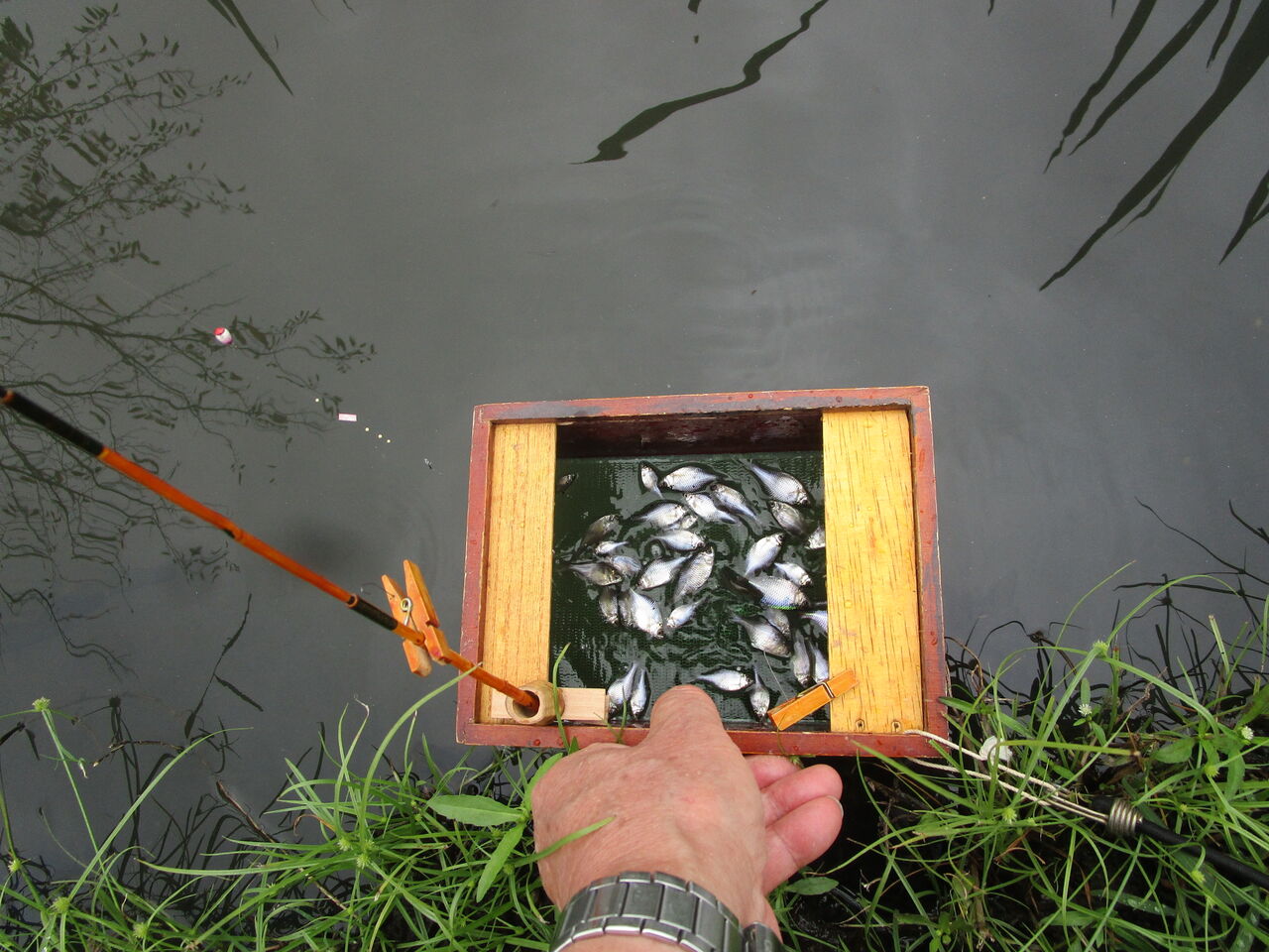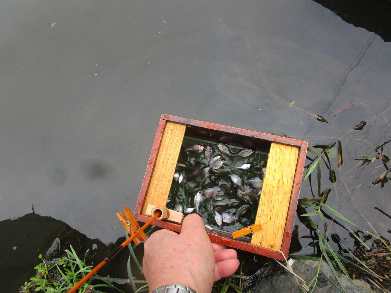 なので下流域まで走らせると鯉が何かを食べていましたね。その脇の水草の影ではオイカワの群れがいましたので目を凝らすと中にタナゴの姿も見えた気がしましたね(笑)