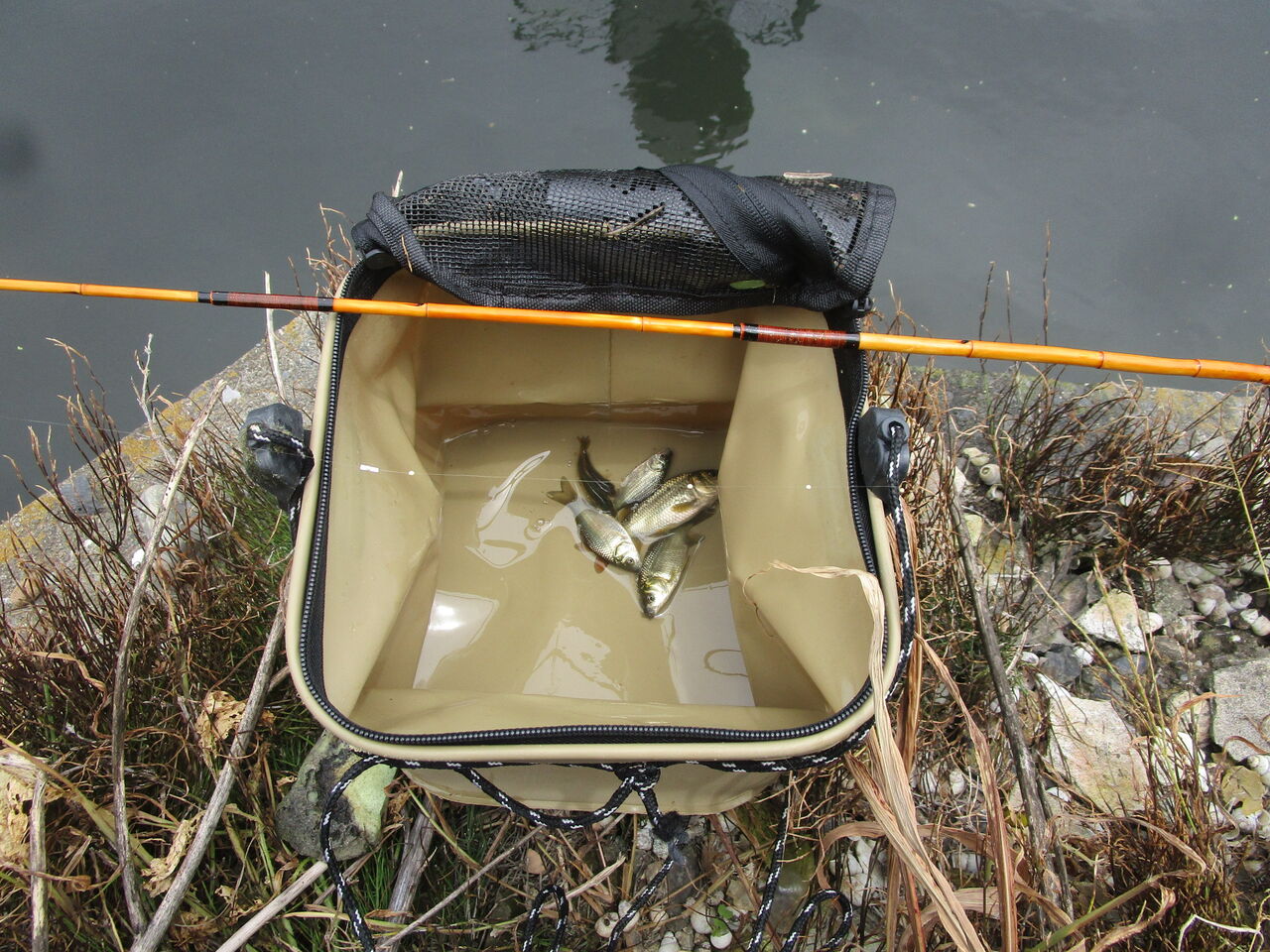 水深は1m位有りますので3.3尺竿を出して棚を合わせ仕掛けを流してみると思った所でシモリが止まり軽くアワセを入れると快い手応えに綺麗な小鮒が掛かって来てくれましたね。
