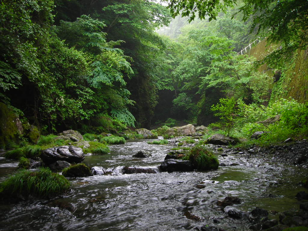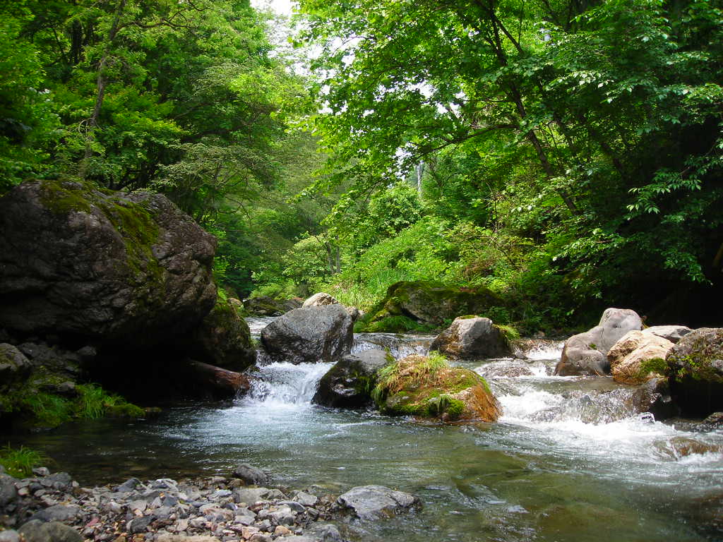 渓流に着いて川を見ると昨日の雨で水量が増え少し濁っていました。