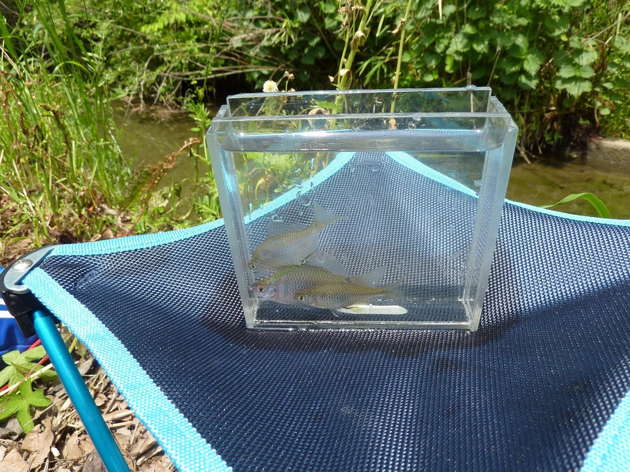 水の中を覗いて見るとタナゴらしき群れを発見する事が出来ました。(右の写真)