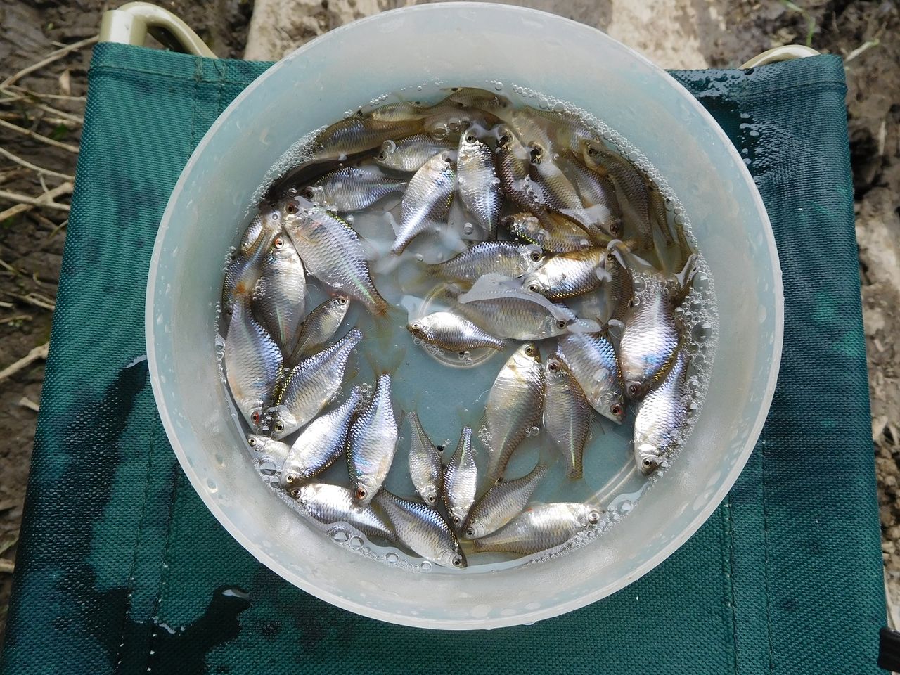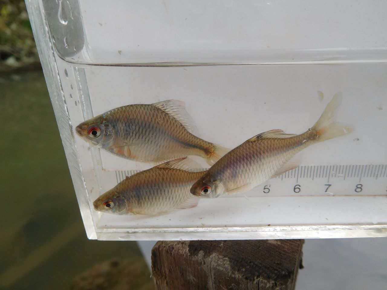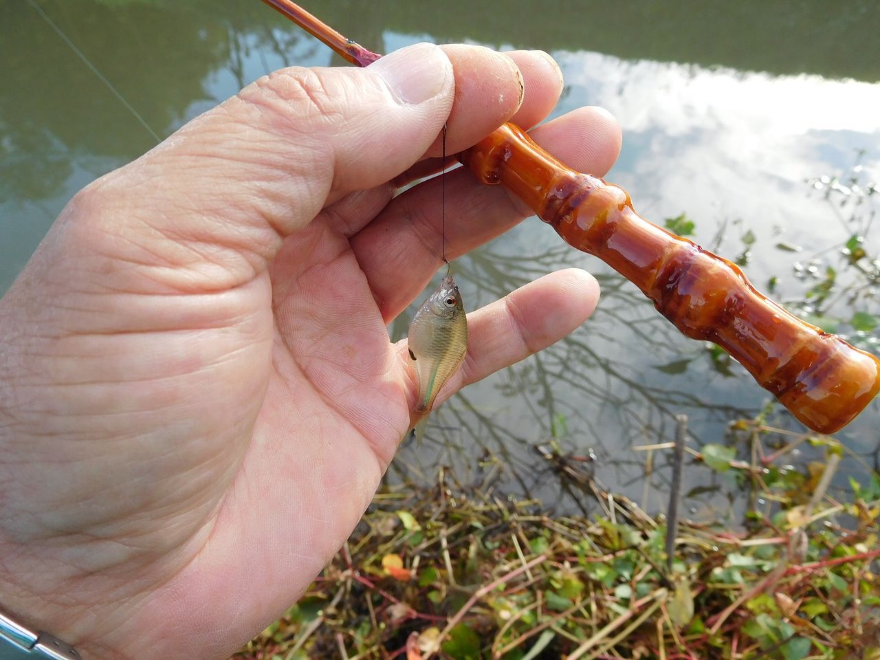 流れに竿を出すとヌマムツやクチボソ、タモロコなどの細身の魚が遊んでくれます。