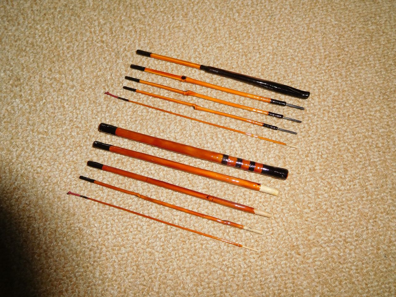 次に以前作った印籠継ぎ竿を出すと黒柿の握りが細く心もとない6:4の胴調子です。