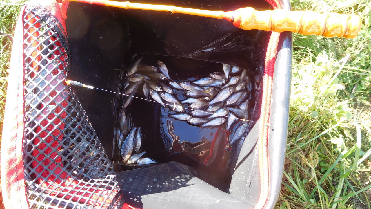 濁り水の中でも日が射すとタナゴの姿が見えるくらいに上がって来てくれました。