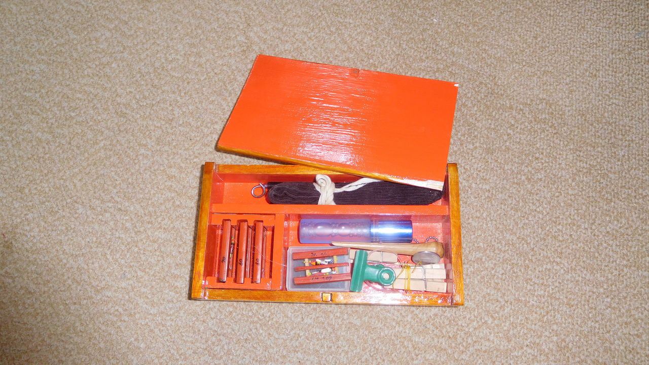 先ずは印籠のカーポンを抜き合切箱に合せてカットして口糸を巻き換え直しました。