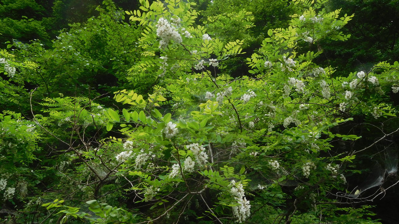 フッと周りに目をやると木々は緑が濃く成りアカシアの花が咲いていましたね。