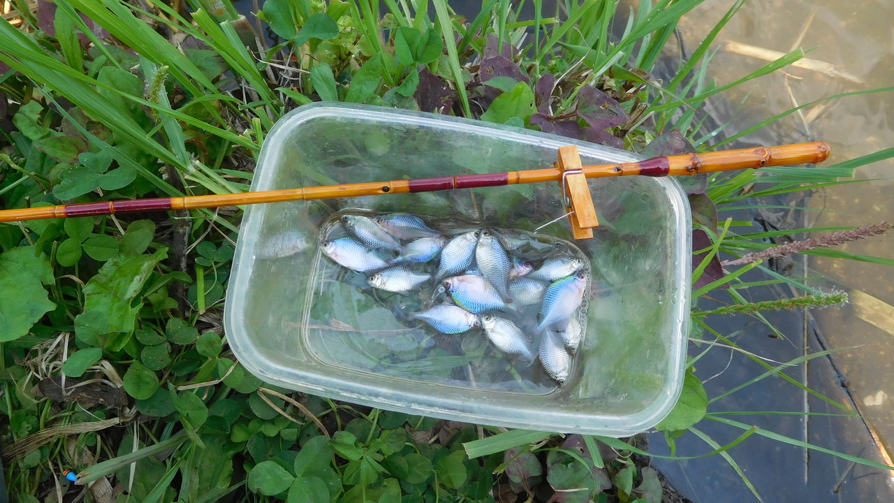 3尺の竿で釣り始めると良いテンポでタナゴが掛かって来ます♪