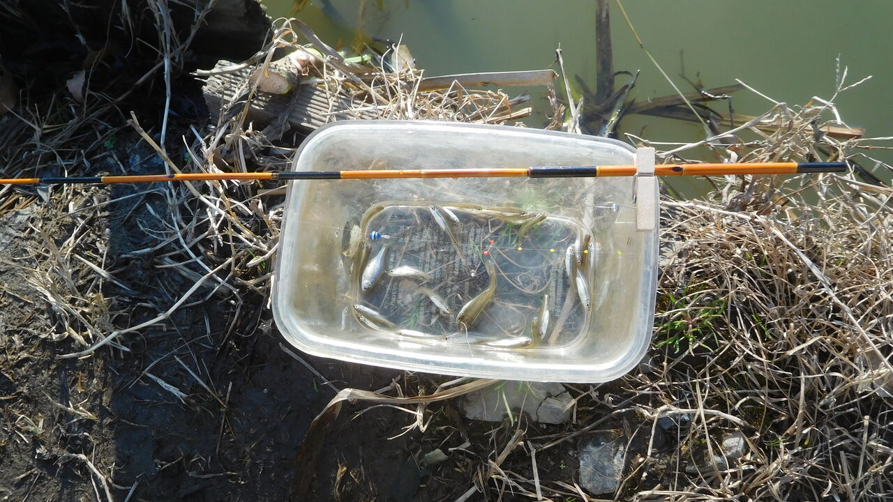 先ずは水路側に入りましたらクチボソの合間に2匹掛かって来てくれましたね♪
