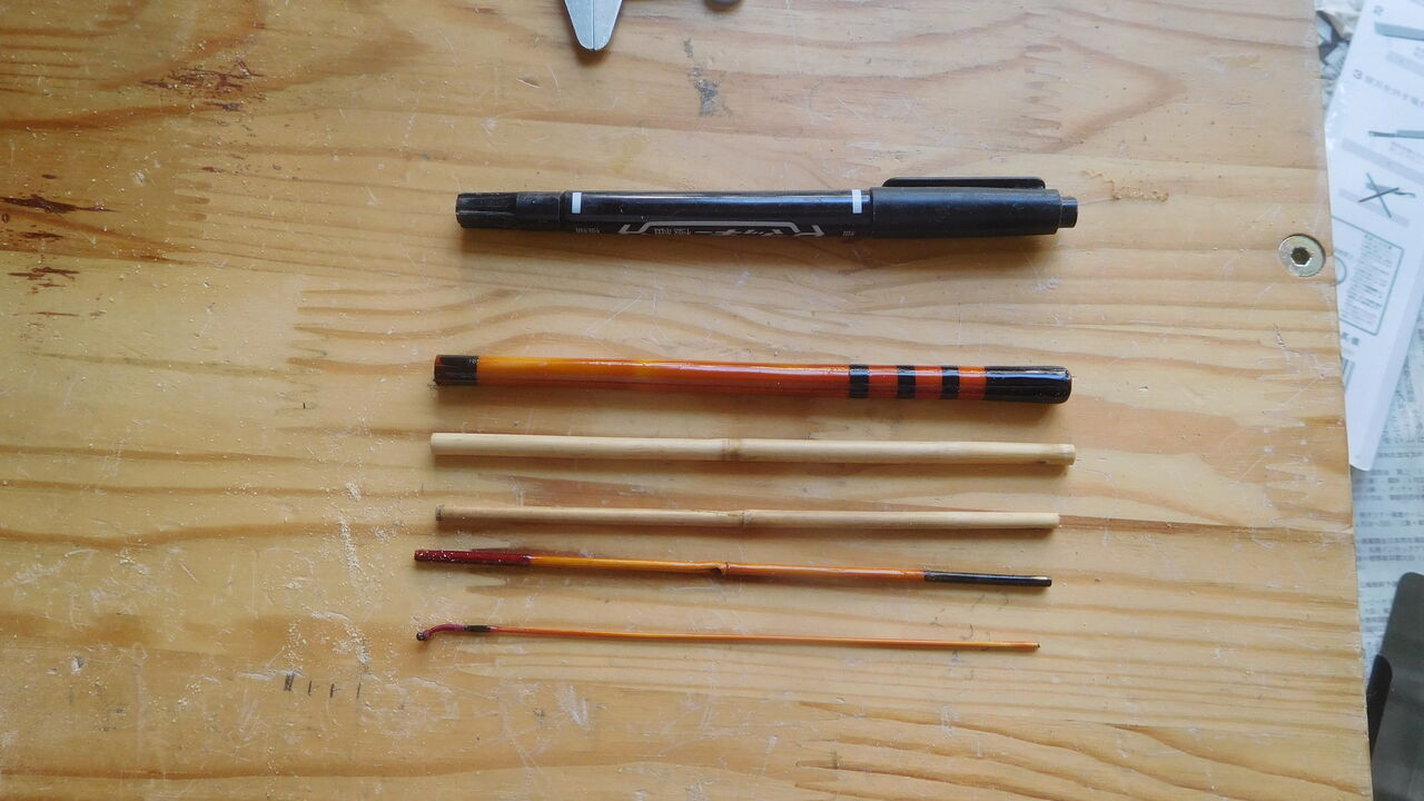 前回は2本のタナゴ竿からパーツを集めて口巻きまで進めましたね。