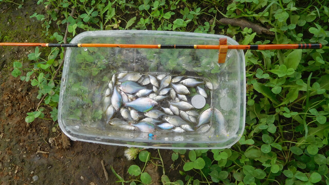 ここは浅いので竿は1.8尺の印籠竿を使い浮き下は10㎝くらいにして