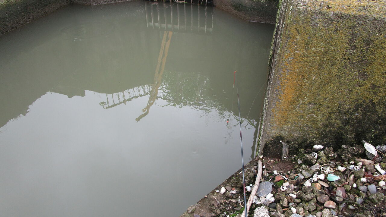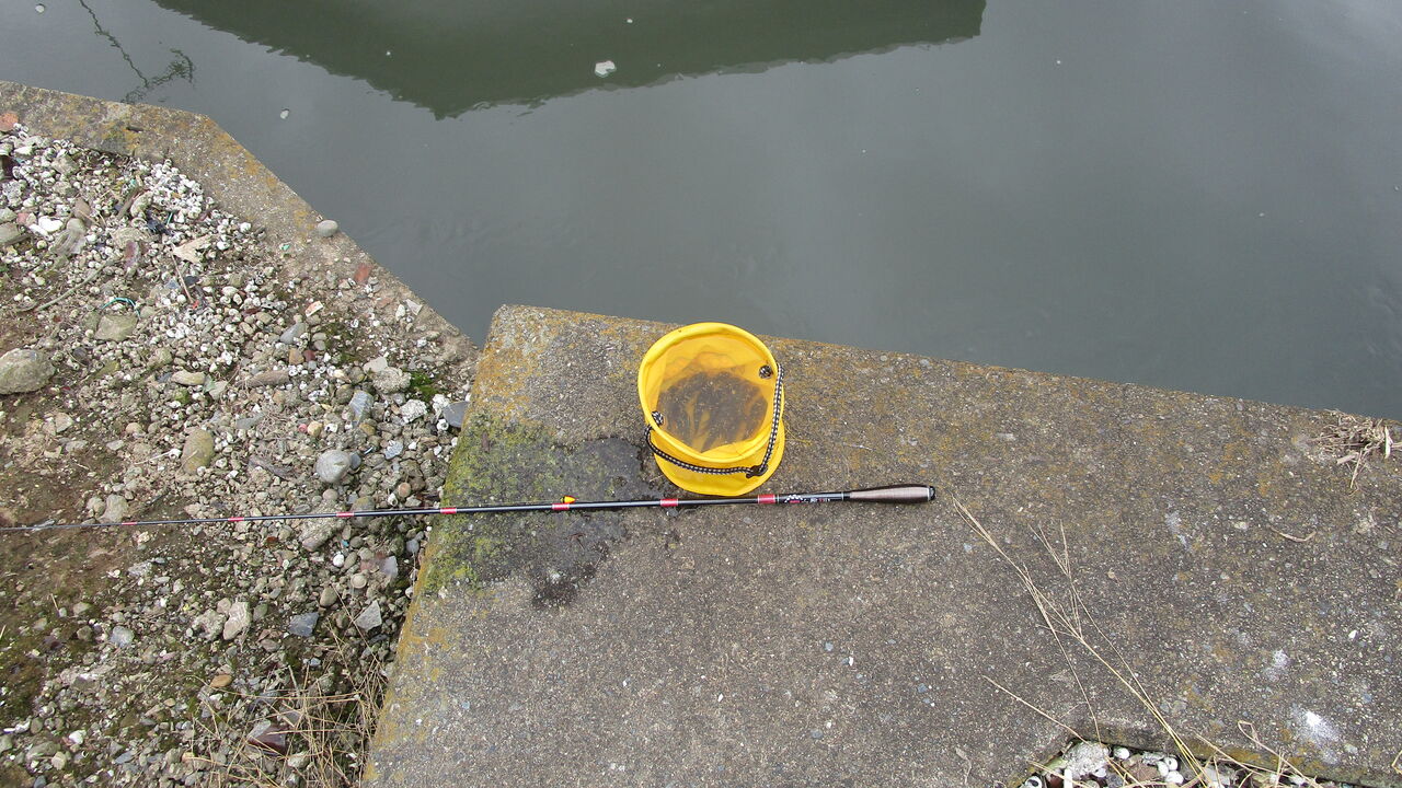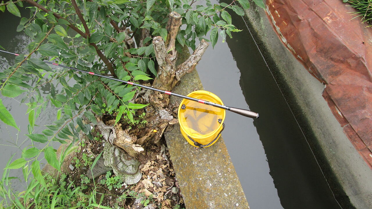 先ずは枝水路の縁に座りながら釣り糸を垂らしてみると前回に水位が下がって