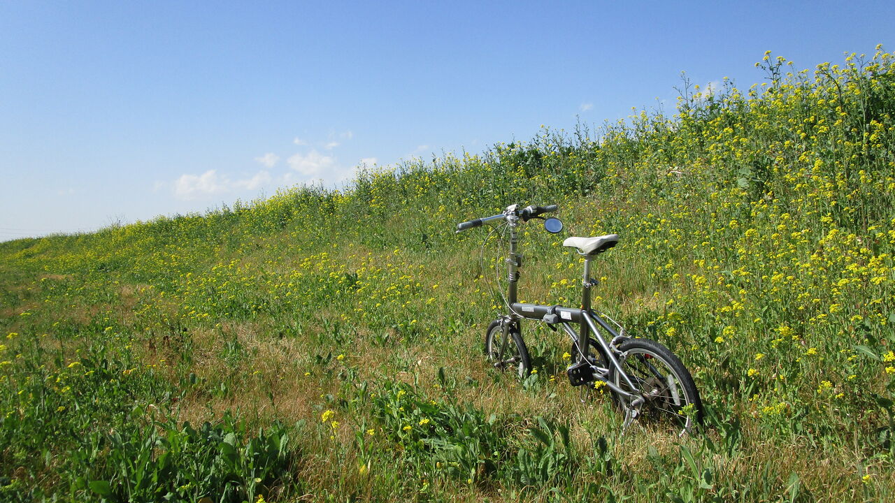 早速空気を入れて漕ぎだすと土手には菜の花が咲いていましたがこんな所で寝転んで青空を見つめていたら気持ち良さそうですよね~・・・でも変な爺が倒れていると間違われるかも知れませんからマスクして漕ぎますがもう花粉症でクシャミが出ます。