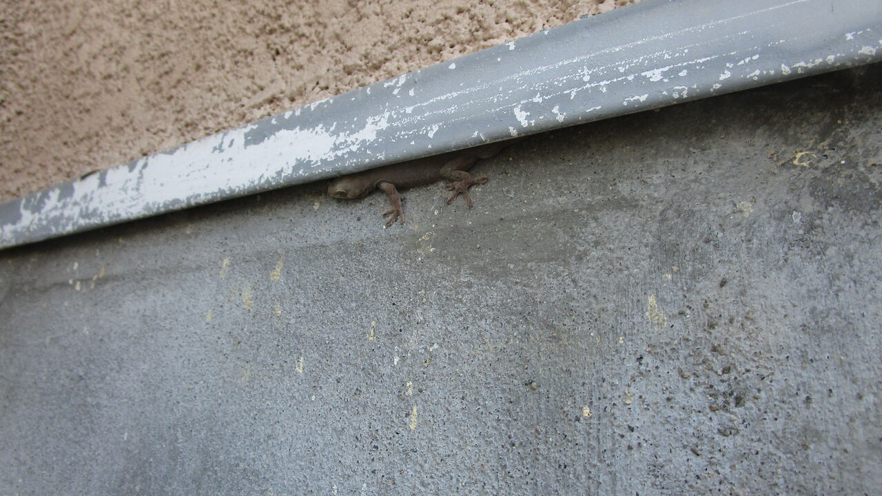 と出掛ける前に門扉を開けるとその門扉の面にヤモリが隠れていました👀
