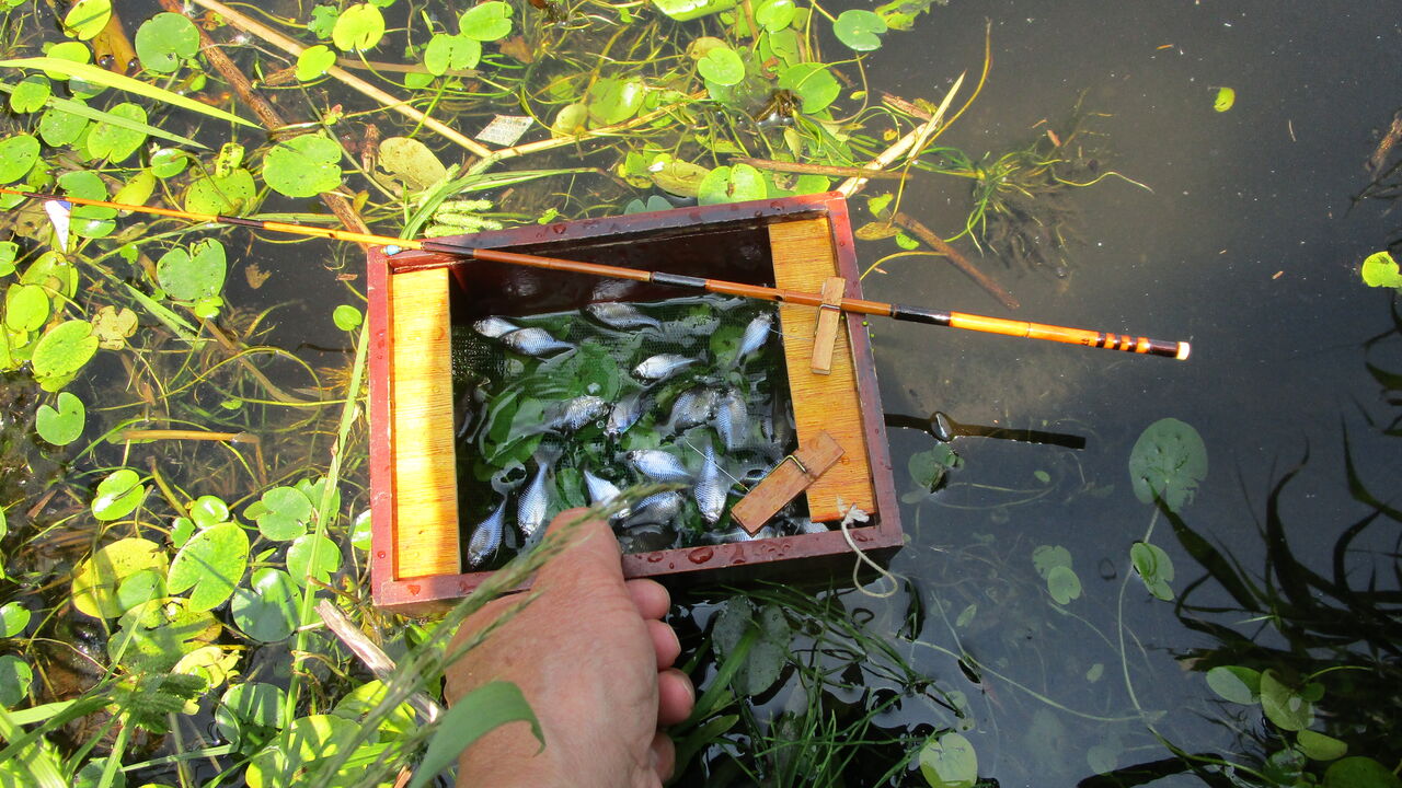 早速水草の際にシモリ仕掛けを入れてみましたら今日はタナゴが神経質に成っている様子で小さい群れが通り過ぎる時に数匹釣れて来るくらいでしたね(汗)