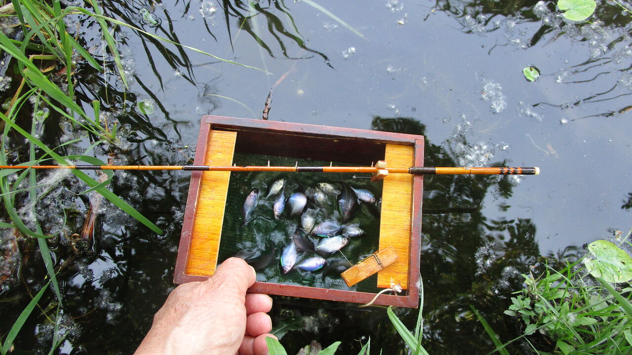 午後は別のポイントに移ってトンボ仕掛けに取り替えて釣ってみると今度は柳の花が仕掛けに絡まる状況でしたがどちらの仕掛けでも無事に入魂する事が出来て良かったです♪