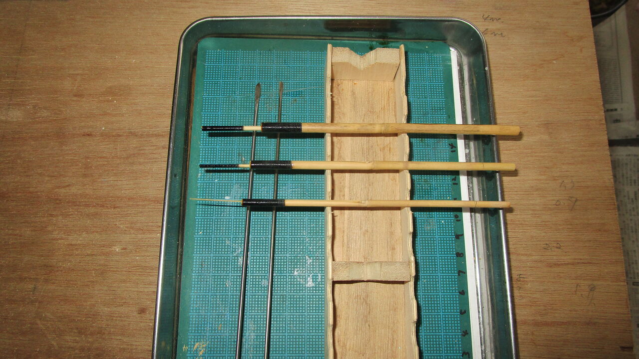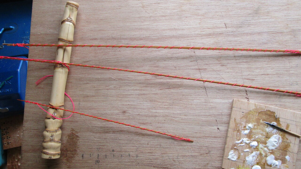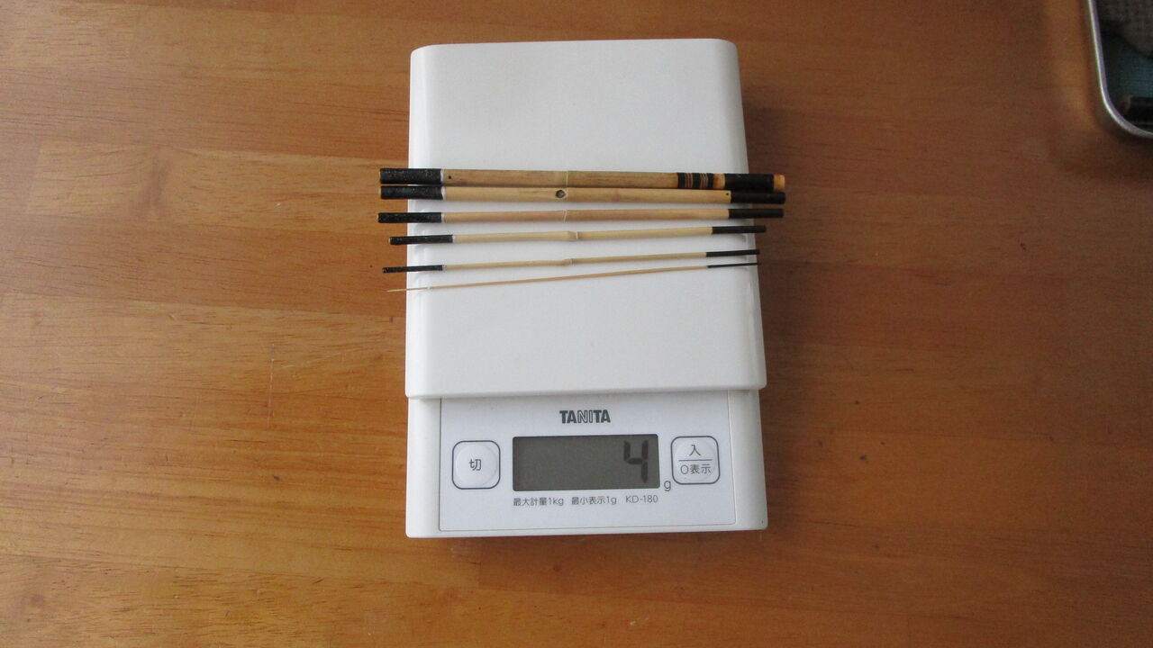 無垢の草材を3本に切り印籠継ぎ竿に作りましたが合切箱には入らないので普段は持ち歩きません。久しぶりに折れそうなドキドキ感を味わいながらタナゴ釣りをしました(笑)