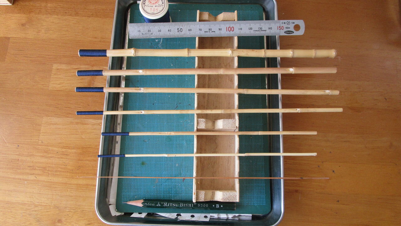 竿作りはゆっくり進めていますがいろいろな条件を勘案すると印籠継ぎと並継ぎの合成竿に成ってしまいました。いざ形に成るとあまり目にしない竿ですよね(笑)