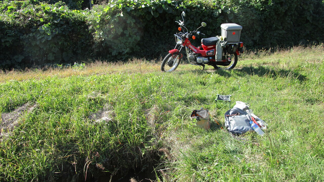 次は相棒のCT110でタナゴの野釣りに出掛けた時の写真ですね。