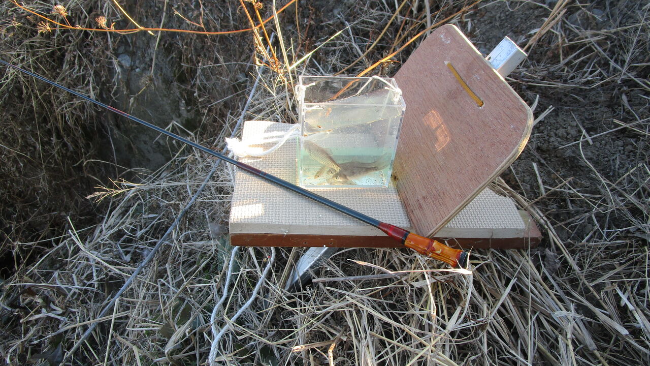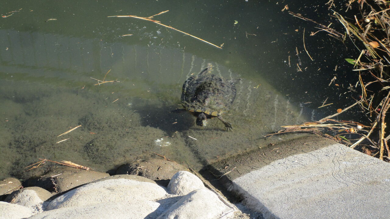 この浮きで仕掛けを組んでタナゴの野釣りに出掛けてみたのですが如何せん寒く水路には氷が張っていたりしていてあちこちの水路を覗き込みながら釣っていると不思議な事にミドリガメが寄って来ました?