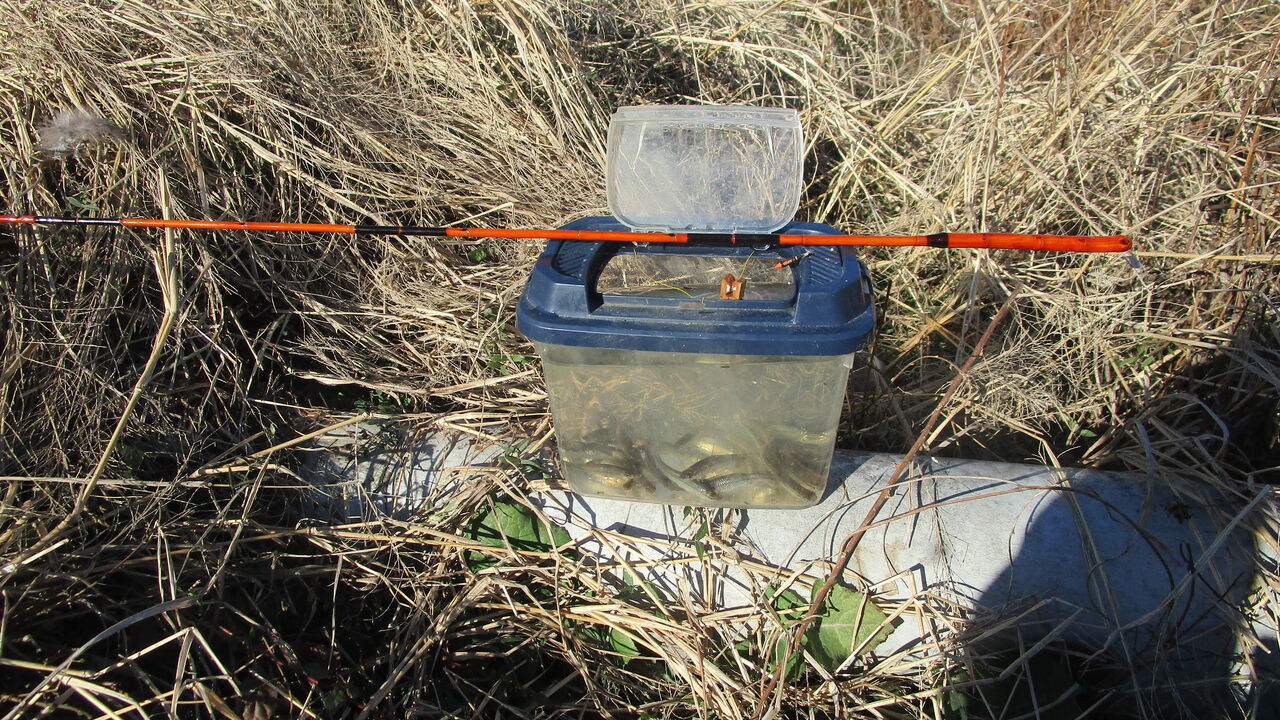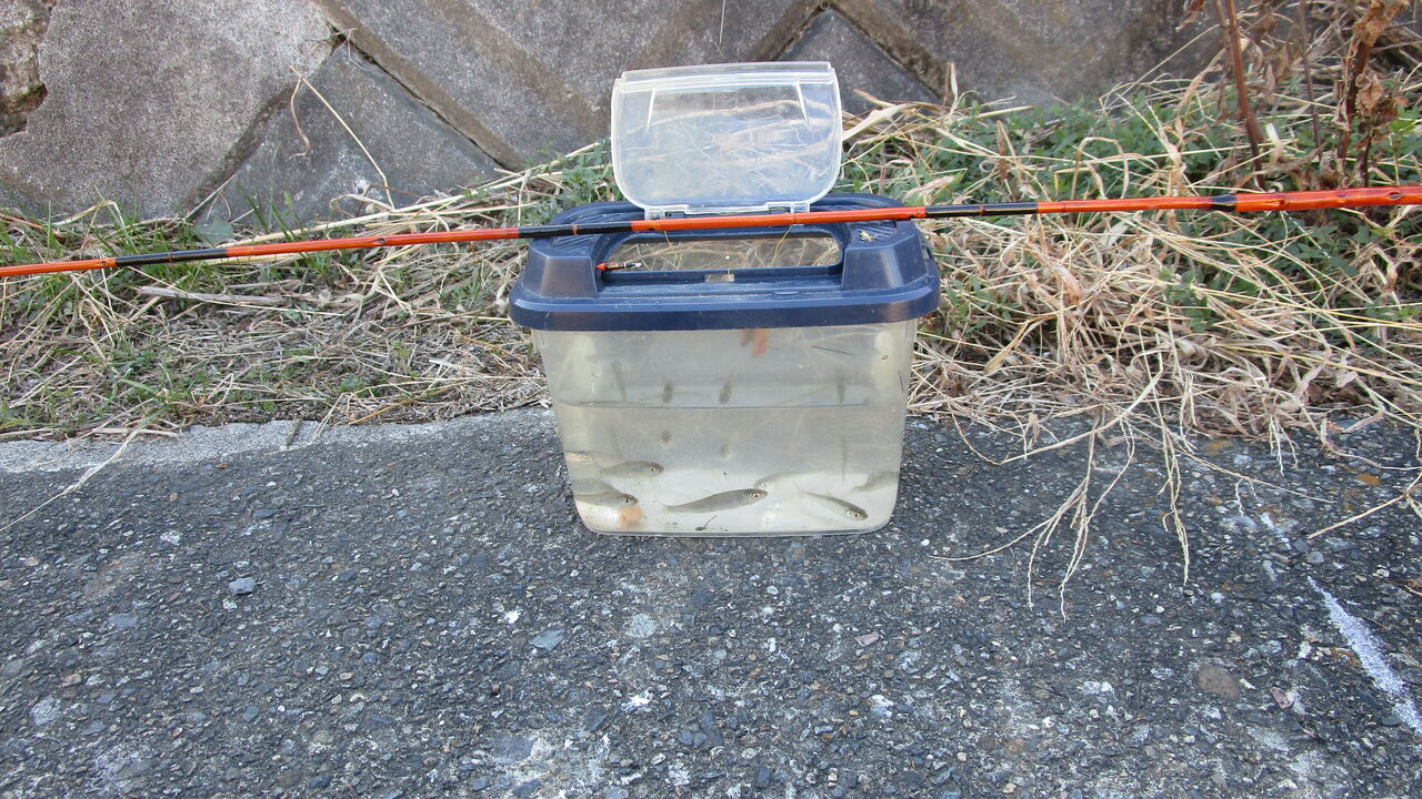 この時期でも田んぼの水路などでサギなど鳥が居る場所には小魚が居るのですよね。
