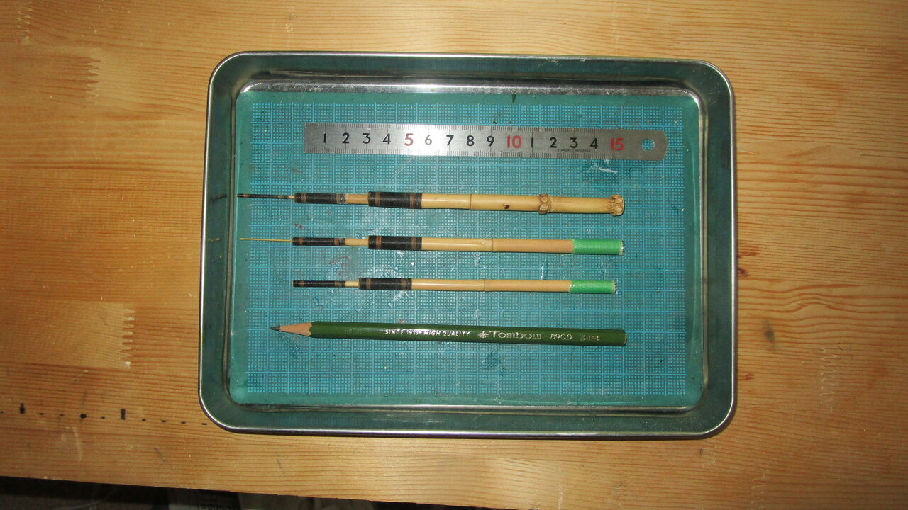 最初は5尺竿で釣り始めましたがここのタナゴはあまり大きくなく繊細な仕掛けが良いので元を差し替えして4.3尺にしました。少し腕を伸ばし気味に成るのですがパラソルも開いているのでこの方が操作し易てですね♪