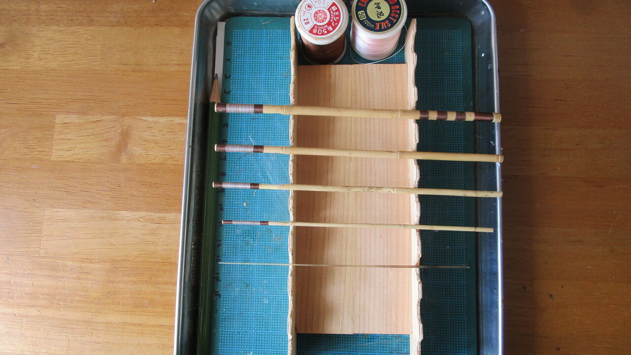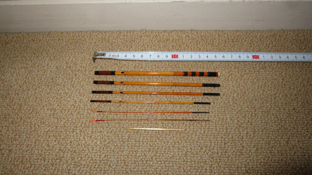 それからカシューが固まるのが勿体なくて続けて今年5作目のタナゴ竿を作ってしまいました(笑) 長さは2.2尺の6本継ぎの軟調子竿に1.8尺の替え手元も一緒に作りました。