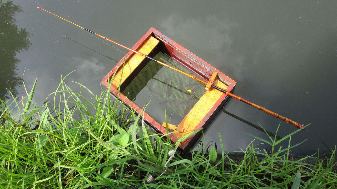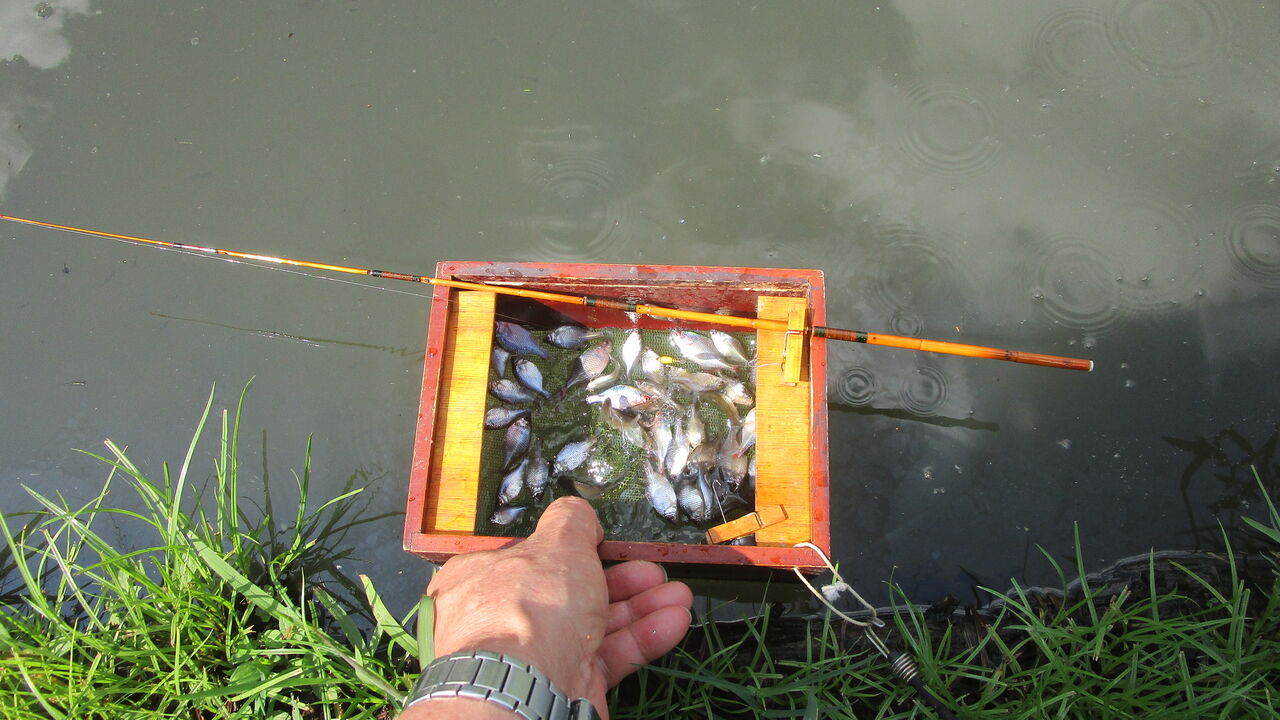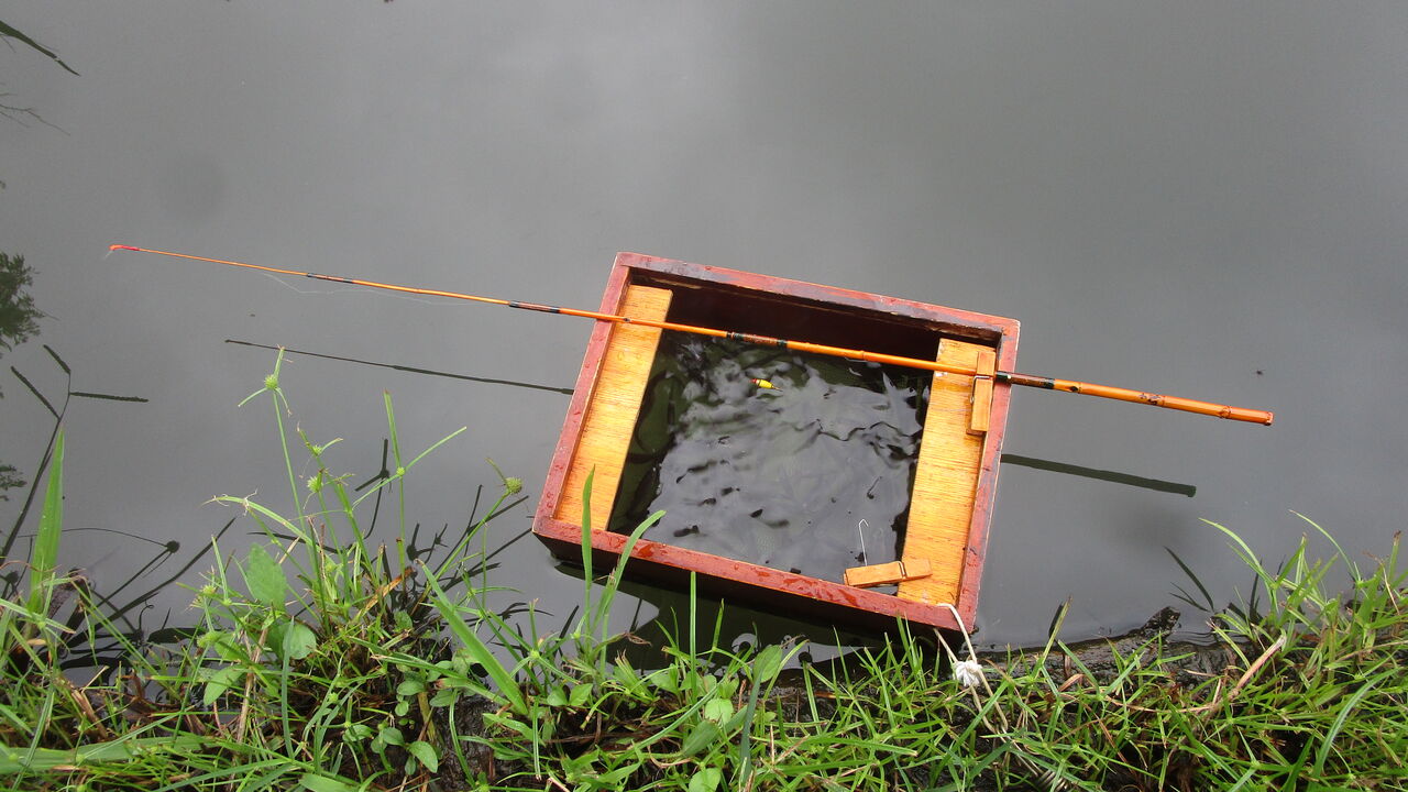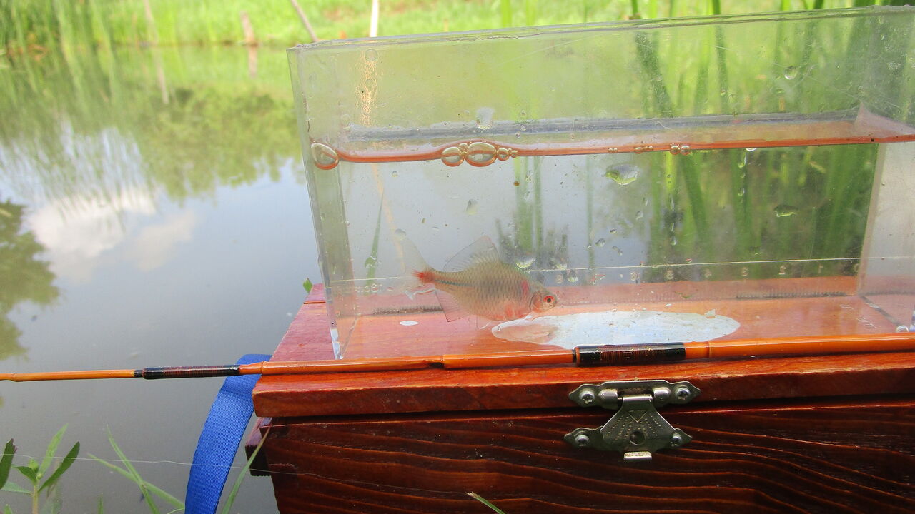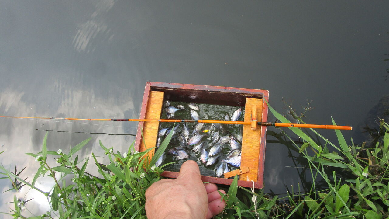 こんな雨が降りそうな日に来る人は居ないのかなぁ~と思いつついつものポイントに入り今年作った2.2尺竿に替え握りを継いで1.8尺竿で釣り始めてみました。
