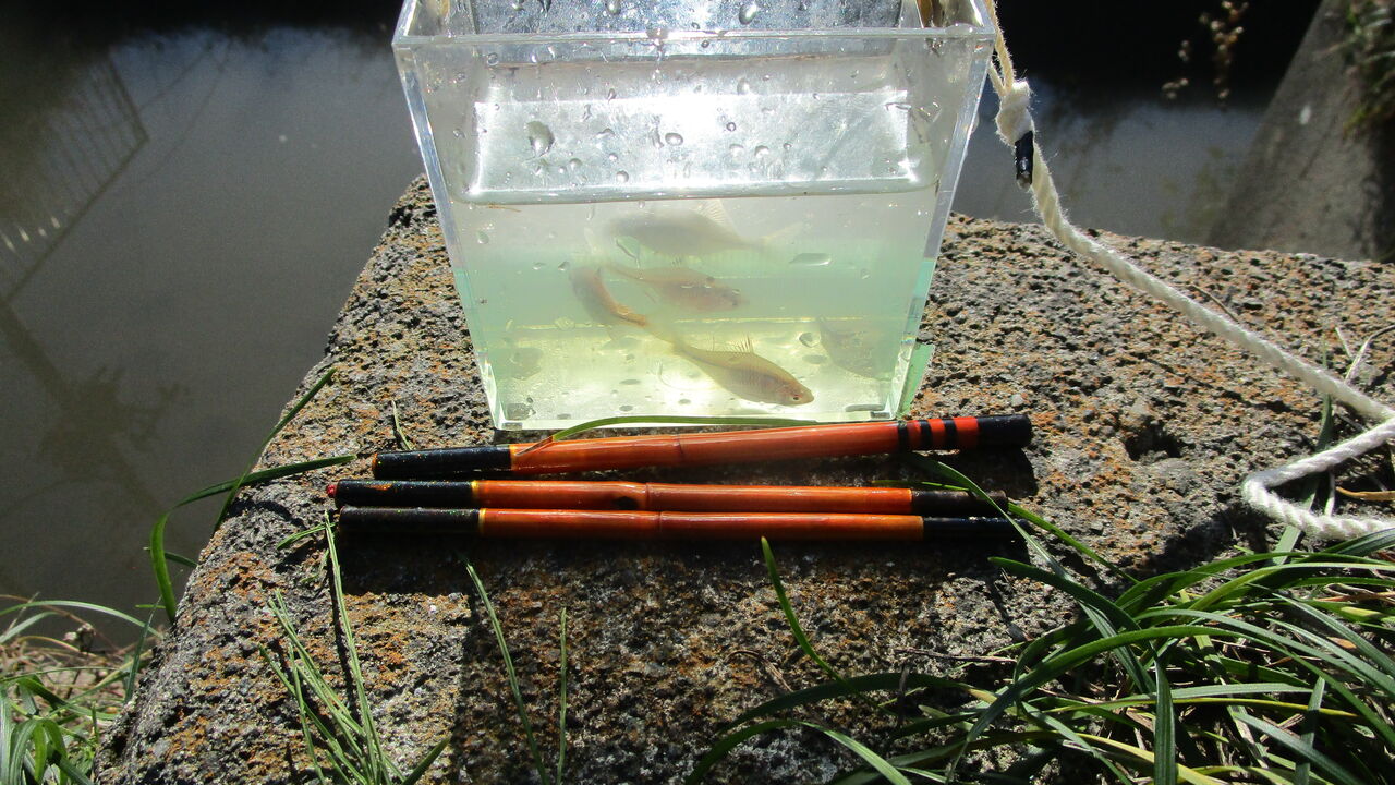 次はタナゴ釣りの事ですが私の豆バラのイメージは浮遊している稚魚たちが徐々に餌を追いかけ潜って行けるように成りやっと水面下で釣れる全長2㎝以下の1円玉桶の中で泳ぐタナゴをイメージしています。