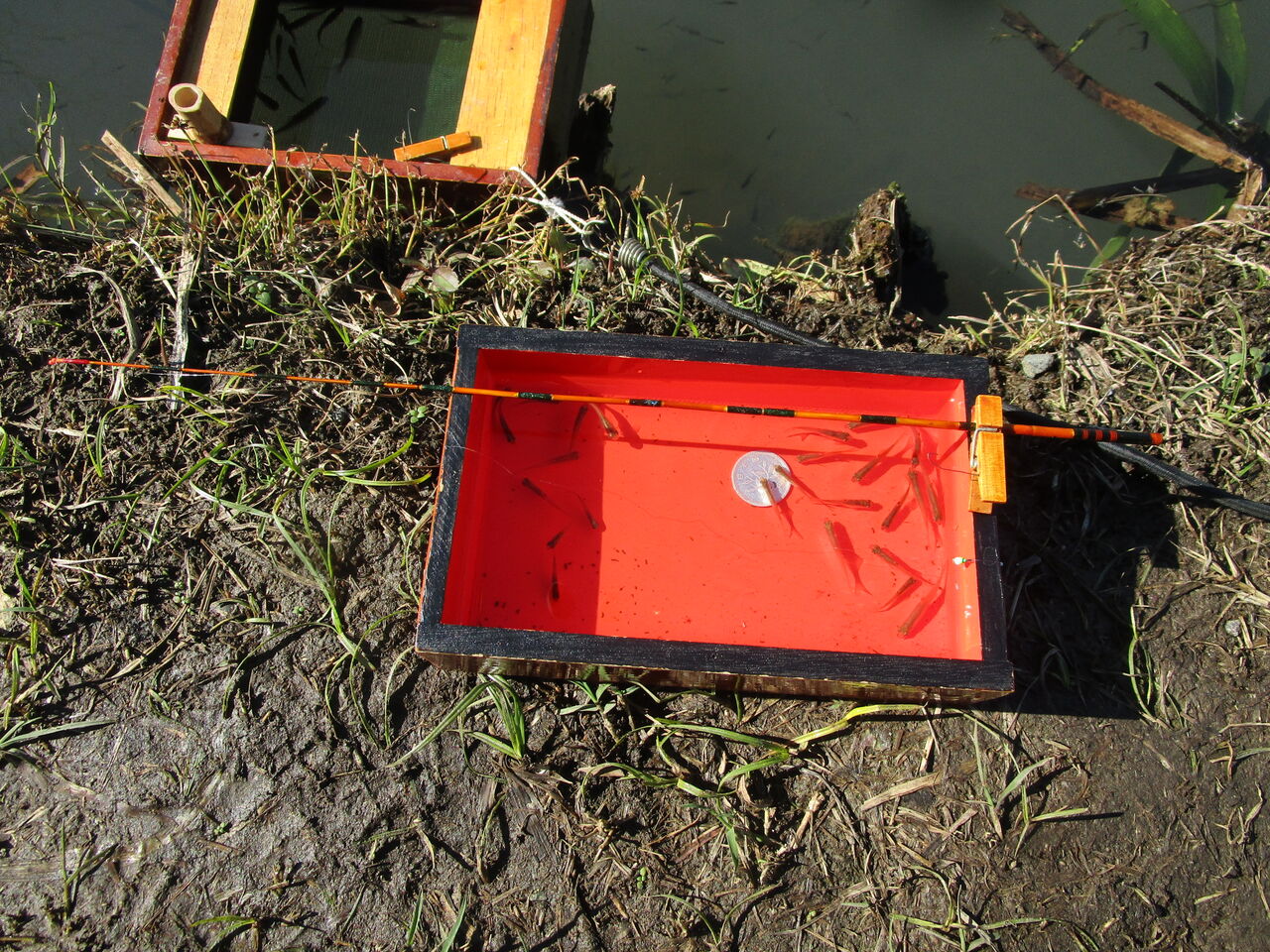 これに水を入れて釣った新子の豆バラを泳がせれば全長が2㎝以内かすぐに分かりますよね♪