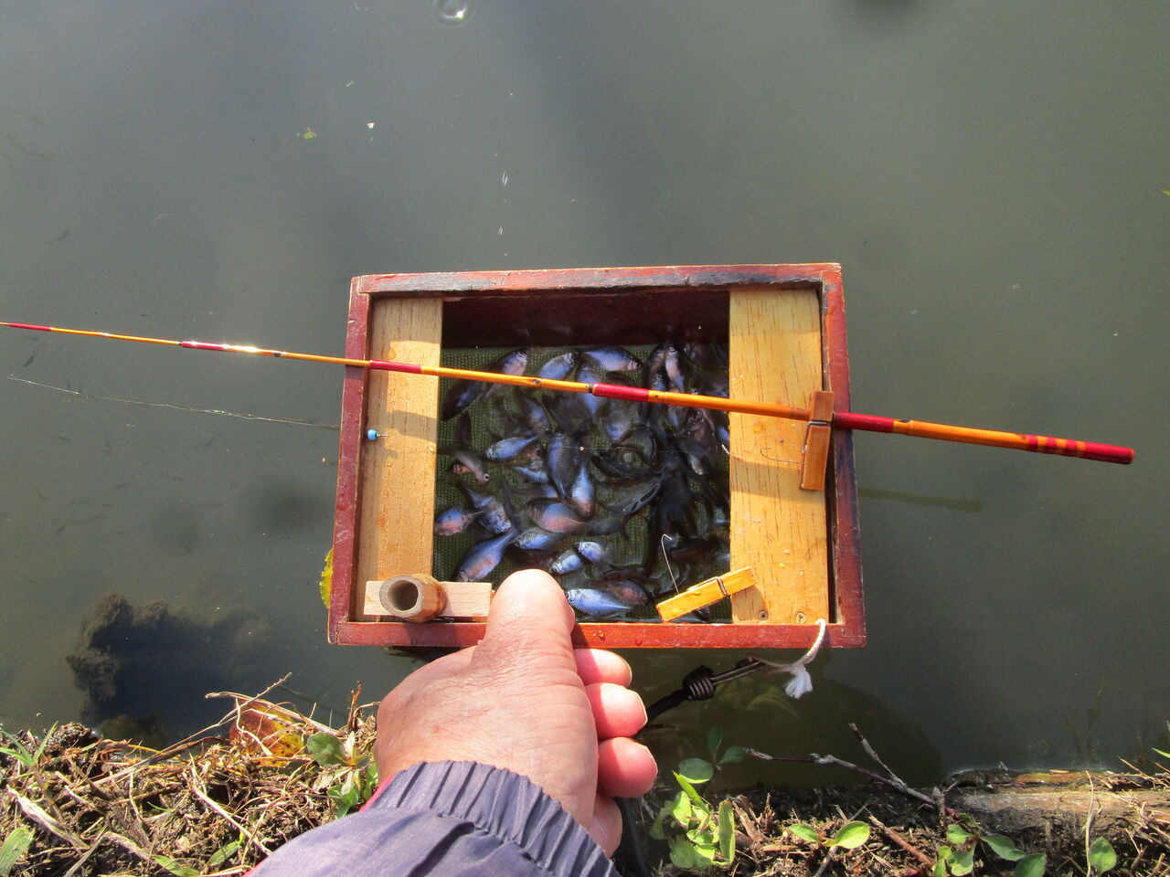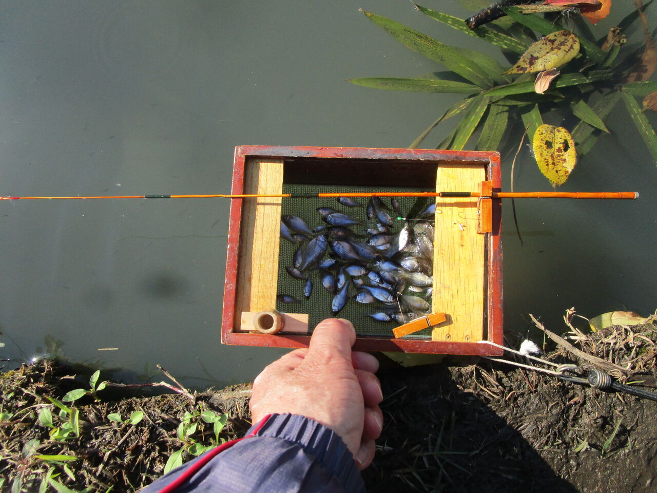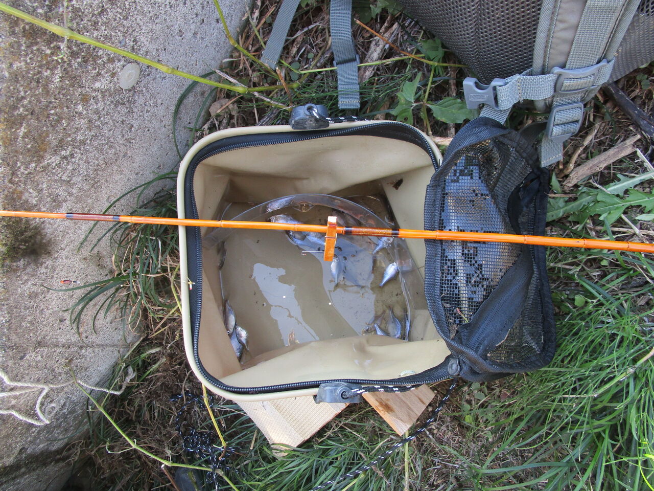 竿は最近よく使っている一昨年前に作った2.2尺6本継ぎの替え手元を使った1.4尺で釣っていますが今回の目的は前回の帰り際に使ってみたいつもより重い仕掛けでのテストです。