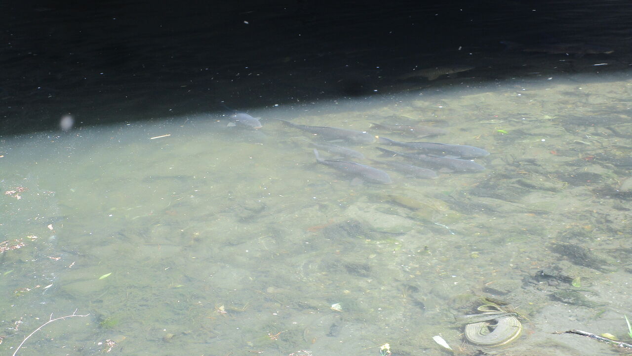 なので下流域まで走らせると鯉が何かを食べていましたね。その脇の水草の影ではオイカワの群れがいましたので目を凝らすと中にタナゴの姿も見えた気がしましたね(笑)